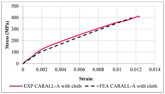 FEA and experimental stress-strain plots for CARALL-A specimens having veil cloth.