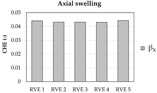Swelling coefficient in axial direction, z, for the five RVEs used in the simulations.