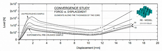 Convergence study conducted using a finite element model of the 2.5 × 3.5 cell core.