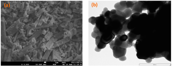 (a) SEM and (b) TEM images of Ag/ZnO nanocomposite.