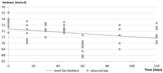 According to Hosseinihashemi et al. [53], the hardness of composites with natural fiber and PP decreased 15% after 12 weeks of fungal exposure, but remained constant for four weeks. According to the authors, there was no significant difference between treatments with brown- and white-rot fungi.