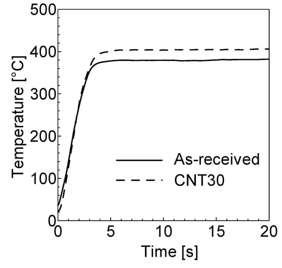 Figure 10. Temperature history of As-received and CNT30 when applying the output power.