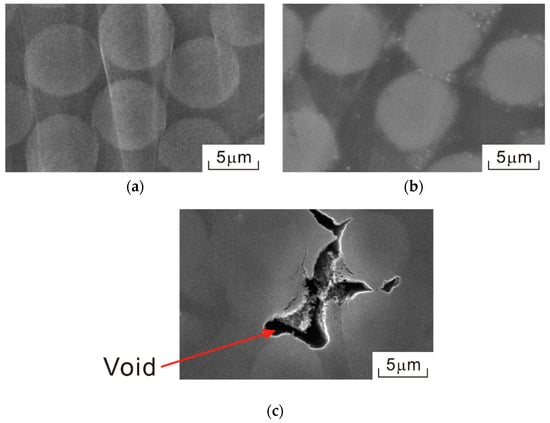 Figure 13 shows the digital microscope image and SEM image of the cross-section of the welded zone of CNT10 and Figure 14 shows the SEM images of the cross-sections of the welded zone of As-received, CNT10 and CNT60. The SEM images are the magnified images of the heating element of the cross-sections of the welded zone in the digital microscope images. In the specimens of As-received and CNT10, there were no voids. In contrast, in the specimen of CNT60, there were many voids between the CNT grafted carbon fibre and matrix. Due to the excess CNT on the carbon fibres in the case of CNT60, the resin was difficult to impregnate between CNTs.