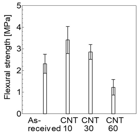 Figure 15. Flexural strengths of As-received, CNT10, CNT30 and CNT60. (N = 5, mean ± S.D.).