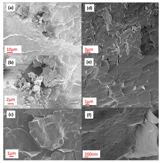 Figure 2d–f) when this was examined across the length scales. The application of shear and some extensional flow in the parallel twin-screw extruder was more effective at higher GNP loadings for breaking down the GNP agglomerates during mixing in PP, with flakes of ca. 90-nm thickness observed (