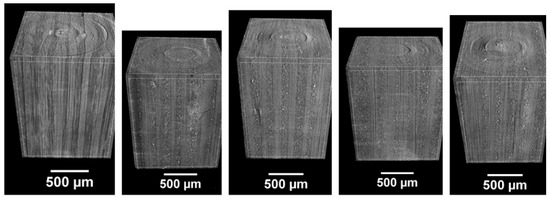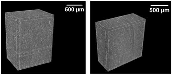 All samples were scanned with Skyscan 1072 Micro-CT (Bruker, Artselaar, Belgium), with a linear resolution of 3.50 µm at a magnification of 80 with an accelerating voltage of 80 kV and tube current of 122 µA. The projection images were acquired over 180° at angular increments of 0.23° with an exposure time of 2.57 seconds per frame, averaged over six frames. The three-dimensional images were reconstructed using the reconstruction software provided by the manufacturer (NRecon Version 1.6.4.1, Kontich, Belgium), where the ring artifact reduction was applied as needed.