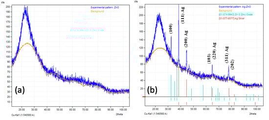XRD patterns of (a) ZnO nanoparticles and (b) Ag/ZnO nanoparticles.