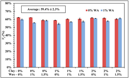 with Mf—final mass (g); Mi—initial mass (g); ρf—fiber density (g/cm3).