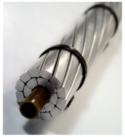 The aim of the present study is to evaluate the feasibility of a new conductor technology especially designed for the next generation overhead lines. It consists of an aluminum conductor supported by a hybrid composite core made of epoxy matrix reinforced with both unidirectional carbon and glass fibers (Figure 1). Carbon fibers have been selected for this application because of the very low value of their thermal expansion coefficient in the longitudinal direction [], thus allowing to design lines with a sag almost independent of temperature variations. However, carbon fibers have been replaced by glass fibers within the composite shell to avoid the galvanic corrosion of the surrounding aluminum conductor [].