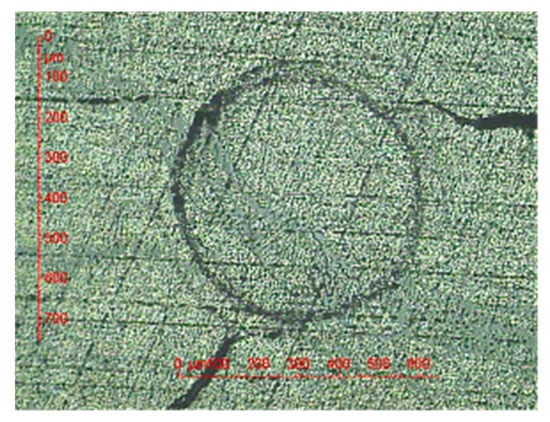 It should be noted that a small population of the as-received composite rods already contained some cracks of circular shape all around the central carbon-fiber wick (see Figure 6). These cracks were presumably created by too fast cooling of the rods at the exit of the pultrusion line. Of course, these defective rods were excluded from the present study.