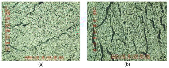 Finally, Figure 8 reports an example of micrographs of the radial and longitudinal cross section of a composite rod thermally aged in ambient air in oven. These micrographs were taken in the free edge of the glass-fiber shell at low magnification (×5).