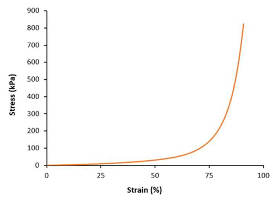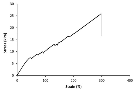 Stress–strain curve for the polyacrylamide–CsCl (PAAm–CsCl hydrogel) of this study.