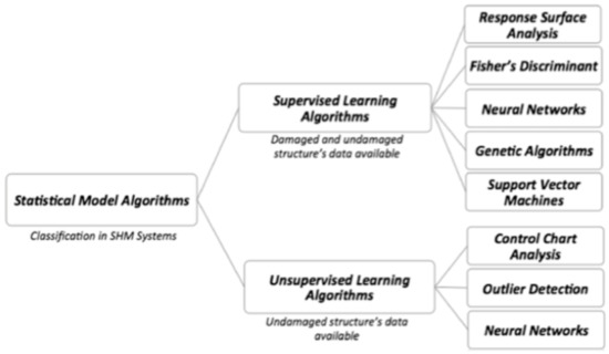 - Algorithms that compare stored data from the pristine structure with recently acquired data, after correcting for environmental factors, to calculate a damage index and to inform about damage existence, localization, and type.