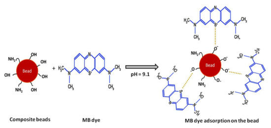 Proposed adsorption mechanism of methylene blue dye on composite beads.