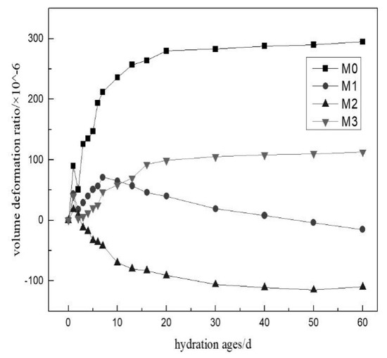 3.3. The Influence of Mineral Mixed Materials on Volume of Potassium Magnesium Phosphate Cement Mortar