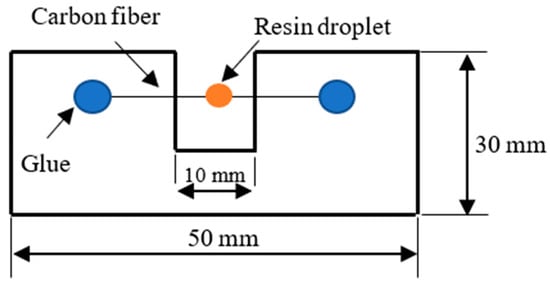 where τ is the IFSS, F is the maximum load, d is the fiber diameter, and L is embedded length of resin drop. The geometry of the frame containing the sample is shown in Figure 1.