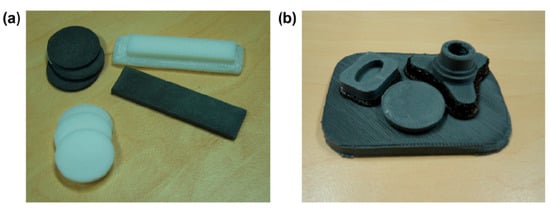 Parts produced on FDM3000 using the new Iron/ acrylonitrile–butadiene–styrene (ABS) composites. (a) Test samples of composite and ABS, and (b) prototype parts of composite. Reprinted from [42], © 2011, with permission from Elsevier.