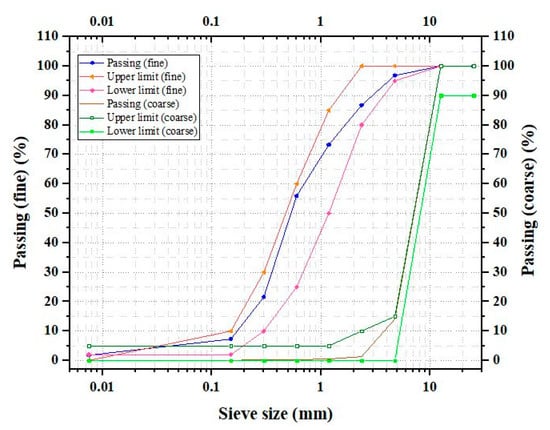 - American Society for Testing and Materials. Standard Specification for Concrete Aggregates; ASTM C33/C33M; American Society for Testing and Materials: West Conshohocken, PA, USA, 2015. [Google Scholar]