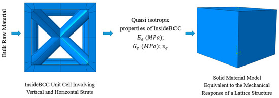 A methodology strategy from unit cell finite elemental analysis (FEA) model to equivalent solid model of InsideBCC configuration.