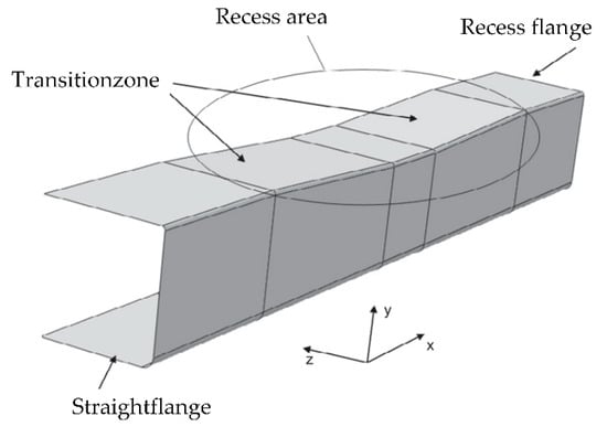 Spar geometry with a flange recess area [28]. Reprinted from Composites: Part A, Vol. 50, An experimental study of mechanisms behind wrinkle development during forming of composite laminates, page 56, (2013), with permission from Elsevier.
