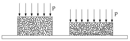 During many advanced composite processes (e.g., autoclave process or compression molding), bulk compressive stresses [63] are applied to the reinforcement in thickness direction leading to an increased fiber volume fraction. During consolidation, the fiber reinforcement begins to take up an increasing amount of the applied compression load. Bulk compressive stresses that are applied in the absence of any axial stress represent similar conditions occurring during autoclave processes. For this case, an expression [63] can be obtained that relates the bulk compressive stress with the fiber volume fraction,