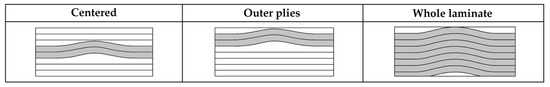 When considering a single ply, the thickness of a typical ply is much smaller than the width, and therefore the bending stiffness out-of-plane is much smaller than in-plane, consequently out-of-plane is the predominantly occurring case of waviness. In [18] it is stated, that thermoset pregregs are more prone to fiber buckling in form of wavy layers because of their lower bending stiffness compared to layers used for liquid composite molding processes which are usually thicker. As shown in Figure 3, plies with higher bending stiffness tend to single wave formation, whereas low bending stiffness plies tend to form a higher number of waves.