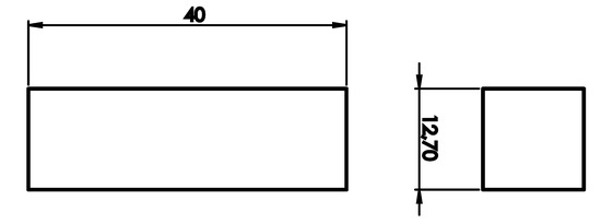 Geometrical data (in millimeters) of the parallelepiped-shaped specimen for the compression tests.