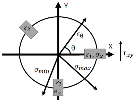 According to ASTM E837-13a [], the incremental HDM involves the incremental drilling of a small hole in a component within the geometrical center of a strain gauge rosette. After the removal of each layer of material, a new equilibrium is established around the hole. The in-depth non-uniform stress profile can be determined relating the relieved strain with the previously existing stresses in each depth increment throughout the total hole depth. Figure 1 shows a sketch of a typical strain gauge and the coordinate system used for analysis, where the positive X direction is alongside the axis of strain gauge 1 and the negative Y direction alongside the strain gauge 3.