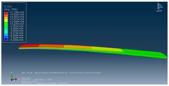 Calculated σx in one bending test obtained through FEA.