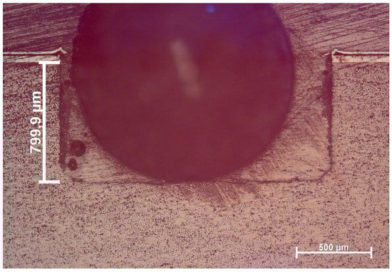 The cross-sectional microstructure of one drilled hole on the CFRP side in the hybrid composite is shown in Figure 15, where a large black hole was induced by an air bubble in the resin in the embedding process of the sample. The straight side of the hole indicates that the hole was vertically drilled. In addition, no significant damage around the hole nor cracking on the lateral face is found. These observations can ensure the reliability of the measured residual stresses given in the previous sections.