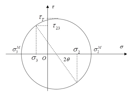 A consistent failure criterion should observe the basic principle of objectivity, as in mechanics and physics [12]. Given a stress state and the transverse isotropy of the material, the behavior of the material, such as failure, should be observed equally in all coordinate systems sharing the common axis 1. Any such coordinate systems are principal coordinate systems, and the principal coordinate system is not unique due to the transverse isotropy of the material. Because of this, the material’s principal axes in the plane transverse to the fibers have lost their representativeness, and the material does not have any preference in terms of failure modes in this respect. In the spirit of the maximum principal stress criterion for isotropic materials [14], the failure transverse to fibers should be determined by the stresses in the transverse plane alone. A stress tensor (stress state) is a coordinate transformation invariant, although it may resolve into different components in different coordinate systems. The predicted failure based on the stress state should therefore not vary if one switches the coordinate system from one to another between different coordinate systems.
