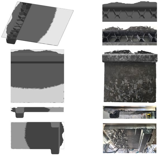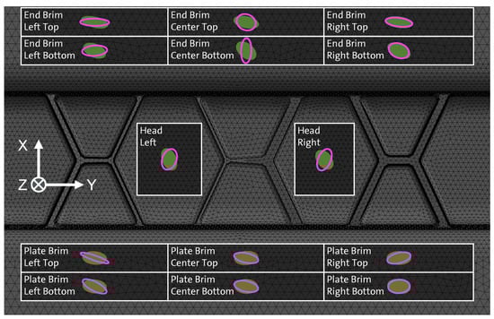 In conclusion, the used empirical models implemented in conventional molding simulation tools, such as Moldflow (Autodesk, Inc., San Rafael, CA, USA) or Moldex3D (CoreTech System Co., Ltd., Zhubei City, Taiwan), are designed for rigid particles with low aspect ratios and are therefore not suited for highly filled long fiber materials. As expected and seen in the literature, even with modified evolution equations, flow-induced long fiber specific effects like fiber bending, fiber–fiber interactions, and changes in fiber content distribution (especially FMS) cannot be accurately predicted by traditional short fiber models [2,6,45,46].