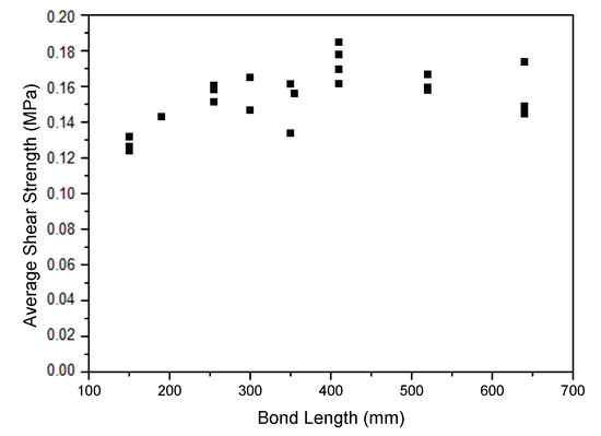Average shear strength for different bonded lengths of the retrofitting system.