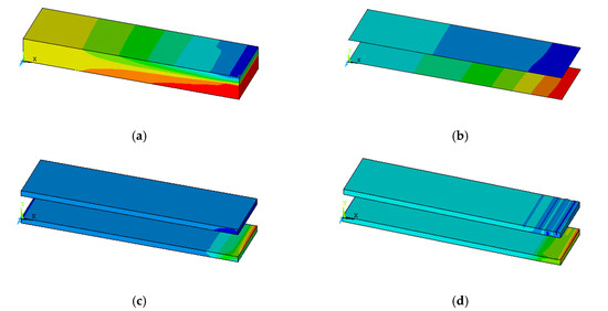 For simplicity, both the masonry wall and the insulation panels were modeled assuming isotropic homogeneous behavior (macro-model approach), while for the TRM, an orthotropic (in tension only) membrane behavior was assumed. Fully bonded interfaces were assumed between the elements. Finally, brick elements (SOLID185) with reduced integration were introduced to simulate the boundary conditions (application of loads through steel plates, see Figure 5, to avoid stress concentrations).