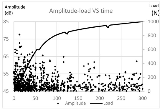In addition, in the intervals of relaxation, the stationary times, and at the same displacement, between the seconds 54 to 59 or 119 to 124 an events silence appears. Then, after the load is resumed, new events appear immediately. This clearly reveals that in the ceramic coating there is no relaxation or stress relief during the relaxation period.