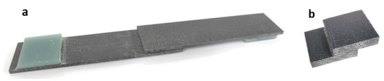 Manufactured (a) FRP single-lap shear specimen and (b) block shear specimen.