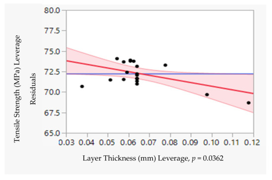3.2. Leverage Plot of Layer Thickness vs. Tensile Strength