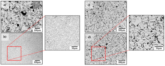 Microstructure comparison of PIT Al-8Ce wt % sample (a) before and (b) after heat treatment at 400 °C for 8 h., and PIT Al-14Ce wt % (c) before and (d) after heat treatment at 400 °C for 8 h.