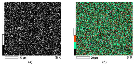 Figure 1 indicates that Si atoms of silica are distributed uniformly inside the two samples. We confirmed similar EDX images for the other samples. In addition, although not shown here, we observed all the samples’ SEM images, which are probably more popularly used in general to check the dispersion of fillers in NCs. Therefore, we believe that the silica nanofillers were dispersed uniformly in all the NC samples.