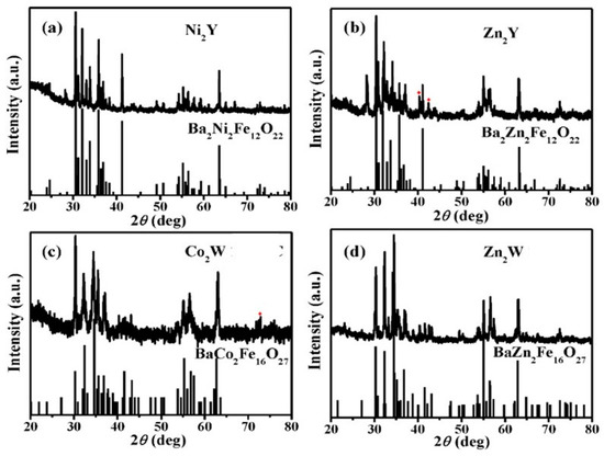 - Pullar, R.C.; Bdikin, I.K.; Bhattacharya, A.K. Bhattacharya. Magnetic properties of randomly oriented BaM, SrM, Co2Y, Co2Z and Co2W hexagonal ferrite fibres. J. Eur. Ceram. Soc. 2012, 32, 905–913. [Google Scholar] [CrossRef]
