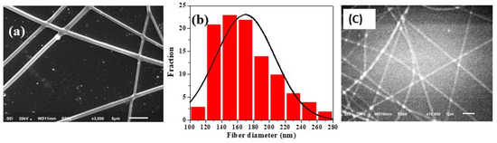 3.2. Structural Characterization of Core–Shell Composite Fibers