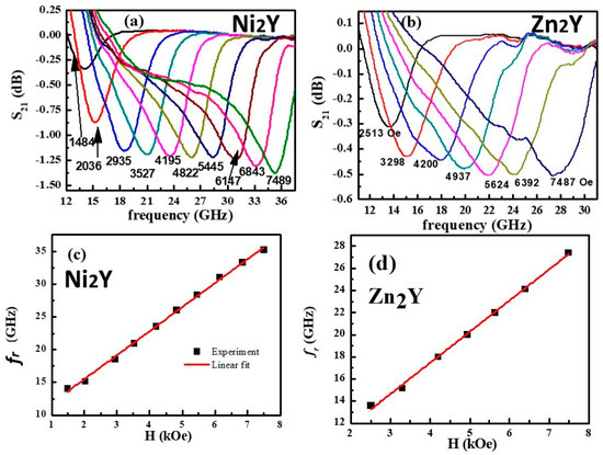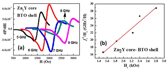 - Choopani, S.; Samavat, F.; Kolobova, E.N.; Grishin, A.M. Ferromagnetic resonance and magnetic anisotropy in biocompatible Y3Fe5O12@Na0.5K0.5NbO3 core-shell nanofibers. Ceram. Int. 2020, 46, 2072–2078. [Google Scholar] [CrossRef]