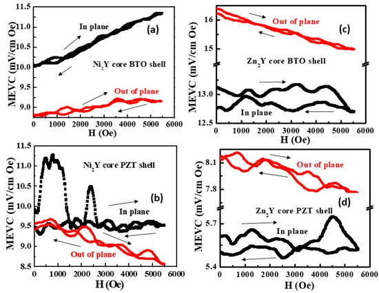 - Liu, Y.; Zhou, P.; Fu, J.; Iyengar, M.; Liu, N.; Du, P.; Xiong, Y.; Moiseienko, V.; Zhang, W.; Zhang, J.; et al. Strain-mediated magneto-electric interactions in hexagonal ferrite and ferroelectric coaxial nanofibers. MRS Commun. 2020, 10, 230–241. [Google Scholar] [CrossRef]