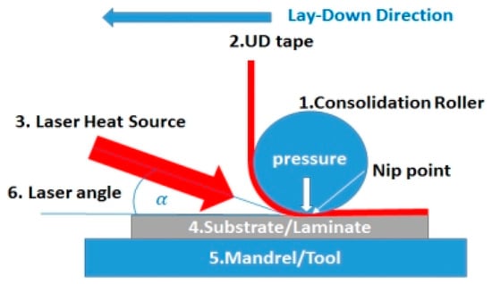 - Srebrenkoska, S.; Dukovski, V.; Risteska, S. Influence of the process parameters on laser—Assisted automated tape placement process. Int. J. Eng. Res. Technol. 2020, 9, 11. Available online: https://www.ijert.org/influence-of-the-process-parameters-on-laser-assisted-automated-tape-placement-process (accessed on 15 September 2021).