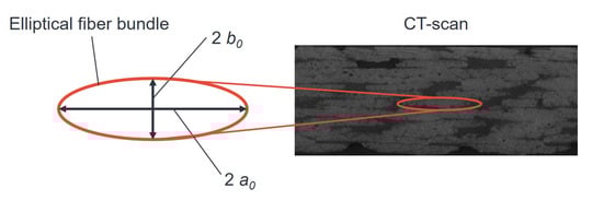 The permeability of the fiber preform is described by the Koch model [10], which is largely based on the model of Gebart [13]. In this model, the fiber bundles are represented as an ellipsoid, since the fiber bundles are usually not ideally round in shape, as showed in Figure 8. The equivalent radius of the fiber bundles used in this study is calculated using the equation according to van West et al. [14]: