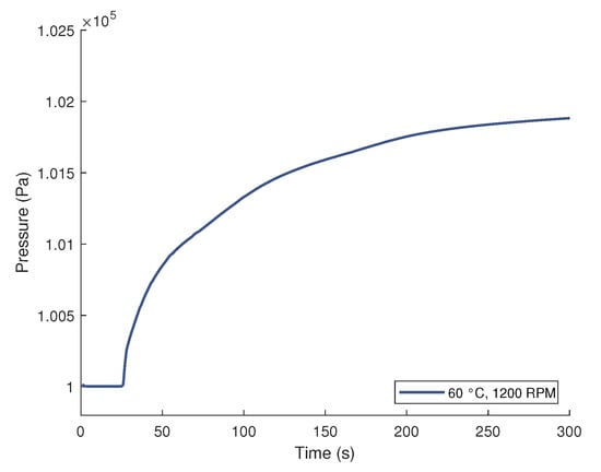 To compare the numerical simulation and the experiment, the position of the sensor was analyzed considering the pressure. The first pressure increase in the simulation is important (see Figure 15), being the time to be compared with the time of the sensor deflection from the experiment. The mold only cools very slowly once it has been removed from the oven until the sensor signal is received due to the large mass. Its cooling is thus not considered in the simulation.