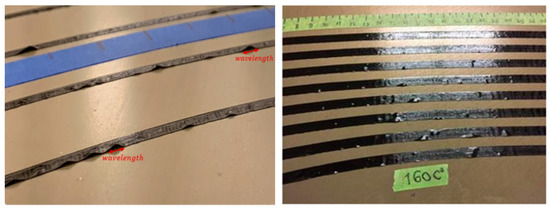 One of the critical parameters in the process of steering the tows is the wavelength of the wrinkle, defined as the length of an opening separation of an individual wrinkle (see Figure 3 and Figure 4).