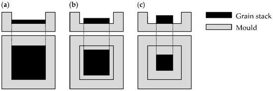 Illustration of mould coverage pattern and level (a) 100%, (b) 75% and (c) 50%.