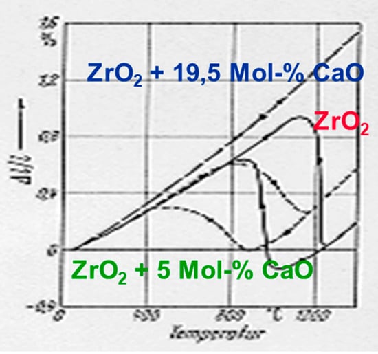 - Curtis, C.E. Development of zirconia resistant to thermal shock. J. Am. Ceram. Soc. 1974, 30, 180. [Google Scholar] [CrossRef]