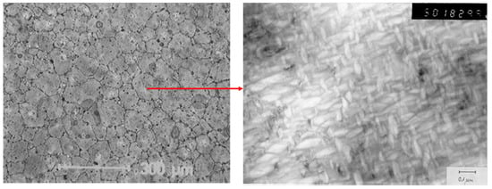 Garvie et al. have shown a very interesting approach by a partial stabilization of zirconia with MgO. They reduced the amount of stabilizing MgO to about 9.2 Mol-% (3.2 wt-%), sintered at a temperature of 1750 °C and cooled the system quickly until about 800 °C [21]. Sintering at 1750 °C means that this process takes place in the region, where only a cubic solid solution is existing. During cooling, the material has to pass a region where tetragonal and cubic solid solution exists in parallel, i.e., during cooling tetragonal precipitates are formed within the cubic matrix grains. Either by optimizing the cooling rate or by heat treatment after sintering, these tetragonal precipitates can be developed within the cubic matrix grains. These cubic grains are in the size of 30–70 µm, while the tetragonal particles within the cubic grains are limited up to 0.2 µm in order to retain their tetragonal modification. A bigger size of these tetragonal precipitates lead to an immediate phase transformation to the monoclinic phase at room-temperature. So, the closer the tetragonal precipitates come to the critical coherence length, the higher the mechanical strength and fracture toughness. Figure 9 shows the typical microstructure of Mg-PSZ and its tetragonal precipitates.